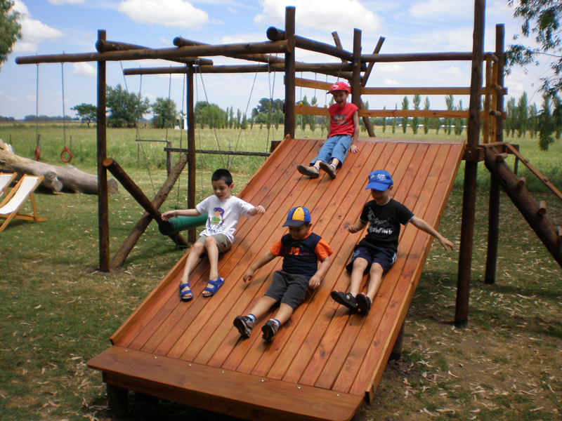 La estancia también cuenta con cancha de volley, fútbol, metegol, ping pong, juegos para chicos (toboganes, trepadores, hamacas, sube y baja), piscina con solarium en verano y boutique de venta de productos regionales.