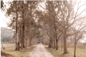 Una añosa arboleda, entrada-boulevard con viejos plátanos y un frondoso